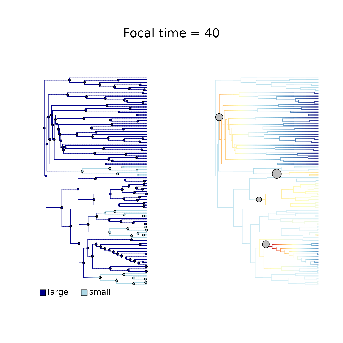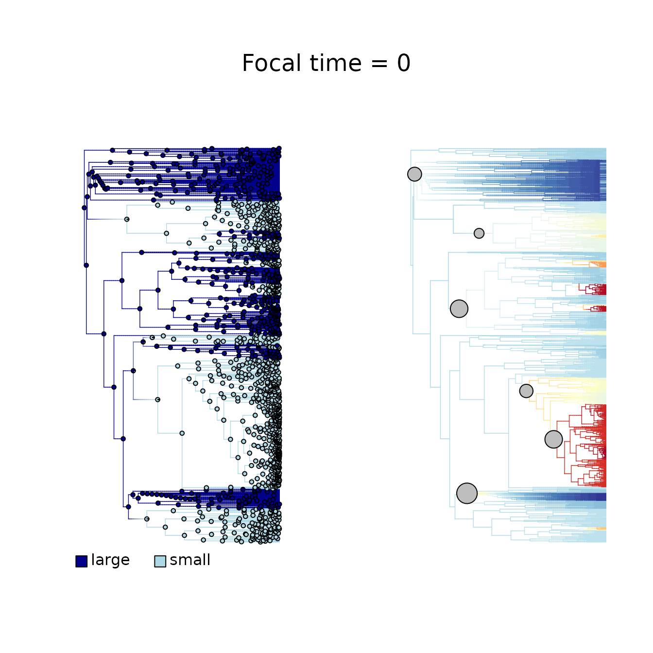 ### 4.7/ Plot both trait evolution and diversification rates and regimes updated for a given 'focal_time' ####