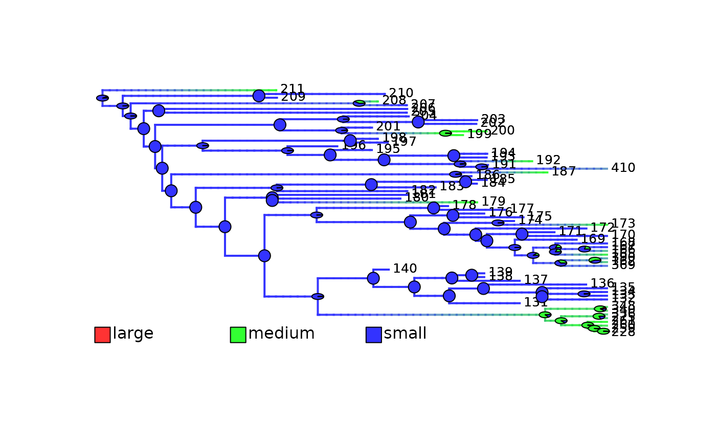 #> 2025-10-22 14:31:37.0474 - Create densityMaps by summarizing simulations of evolutionary history (simmaps).