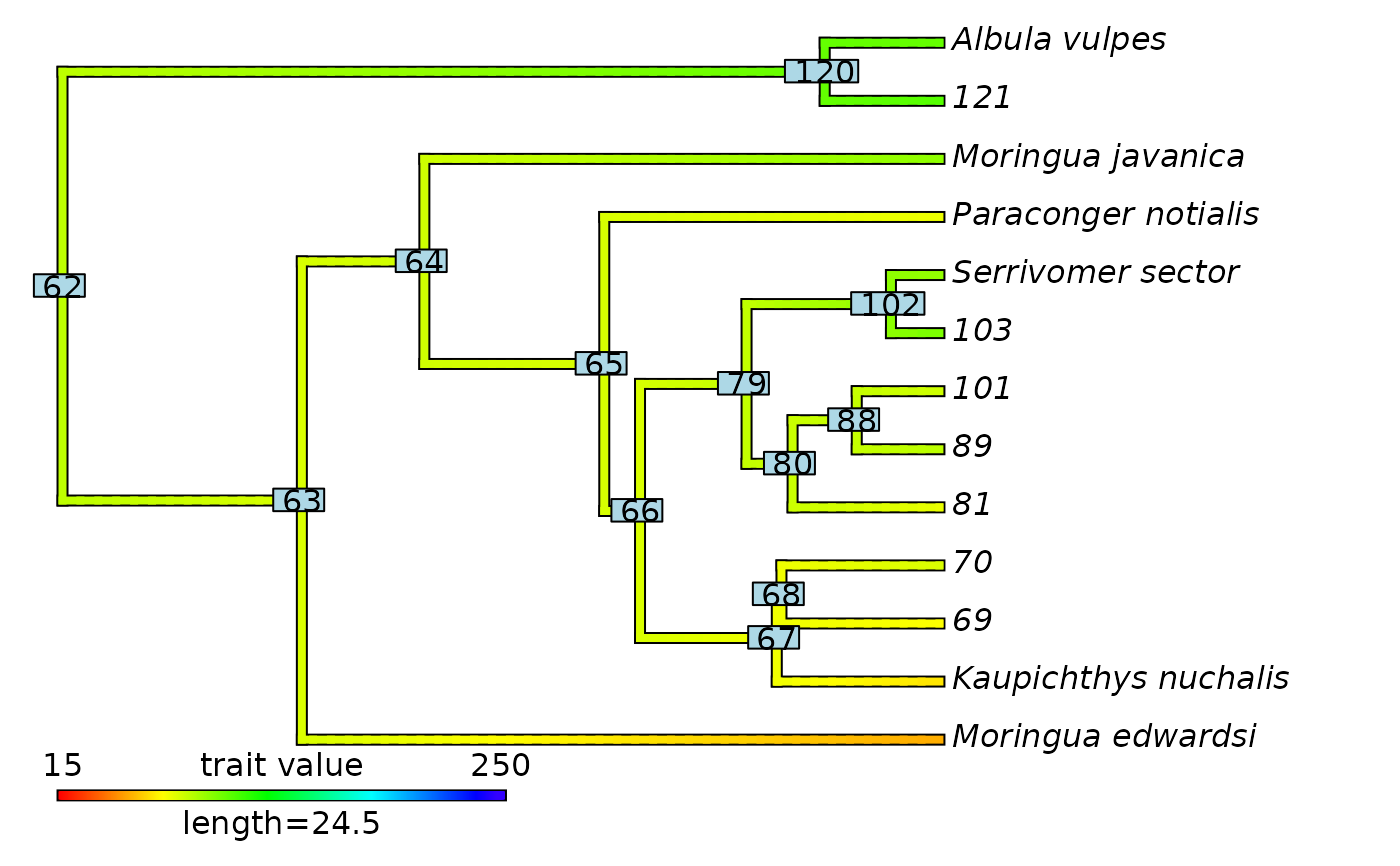 eel_contMap <- phytools::contMap(eel.tree, x = eel_data,