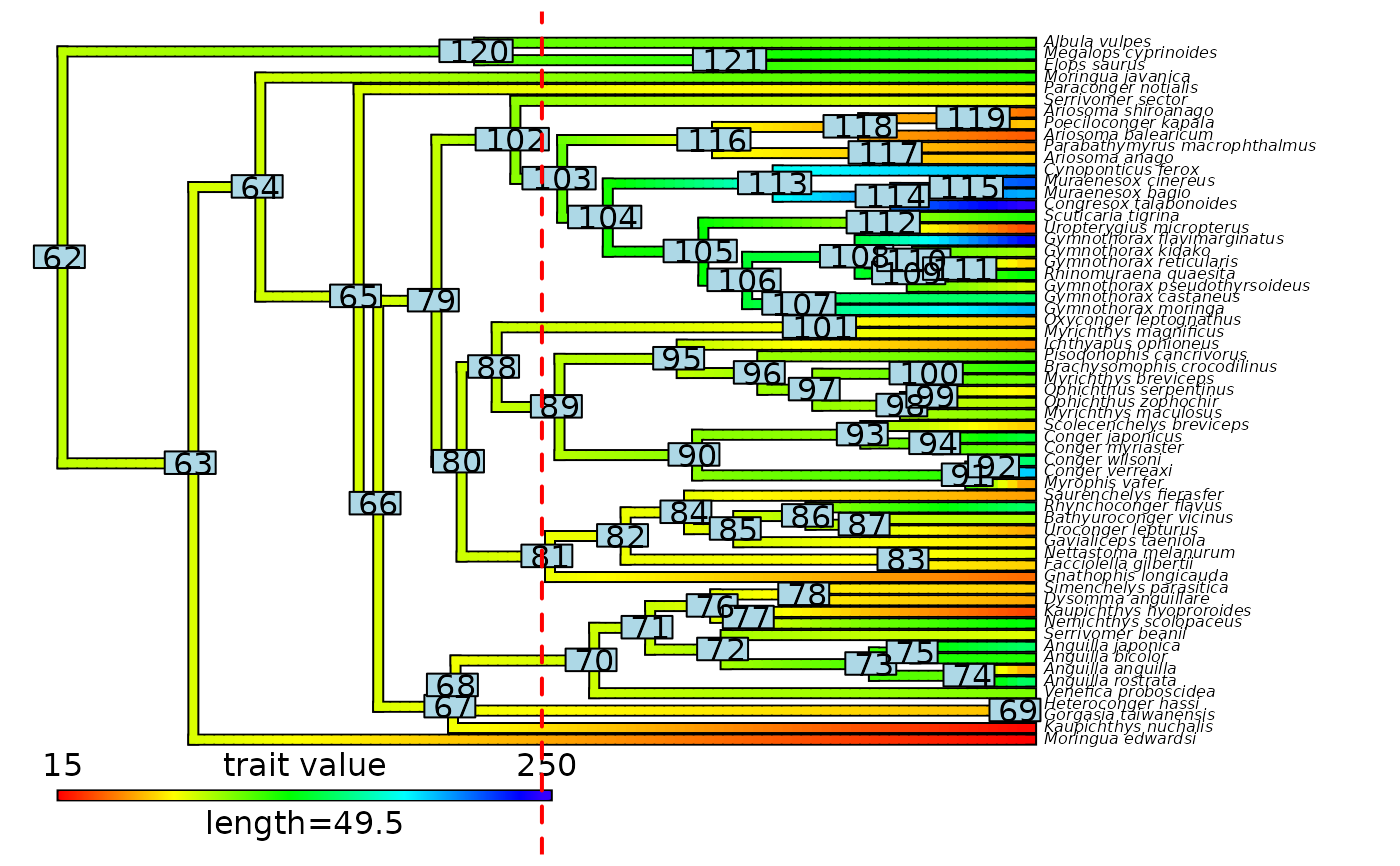 eel_contMap <- phytools::contMap(eel.tree, x = eel_data,